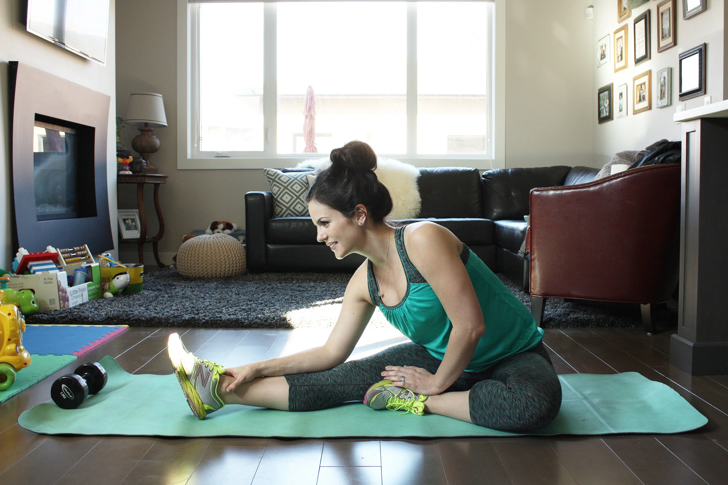 Some of my favorites are getting the kids in the stroller with snacks, blaring beats in my ear phones and doing power walks, lunges, squats or whatever comes to me. I also love a good backyard workout while the kids play.
